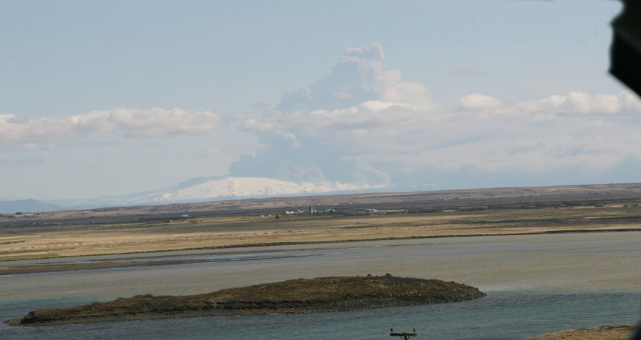 Í dag, mánudag hefur vindur snúist til sterkrar norðanáttar sem beinir gosmekkinum til suðurs frá Eyjafjallajökli. Öskufall nú er því einkum suður af gosstöðinni, en einnig má búast við einhverju öskufalli yfir Austur-Landeyjar og jafnvel Vestmannaeyjar. Veðurstofan spáir hægari vindi með deginum og síðan heiðríkju og hægri breytilegri átt á morgun, þriðjudag. Á miðvikudag er spáð norðan- og norðaustanátt og skýjuðu með köflum. Öskufall verði þá einkum bundið við svæðið undir Eyjafjallajökli sunnanverðum og í Austur-Landeyjum og Vestmannaeyjum. Á fimmtudag og föstudag er spáð fremur austlægri átt þannig að ef sú spá gengur eftir mun aska ekki berast mjög langt frá eldstöðinni.