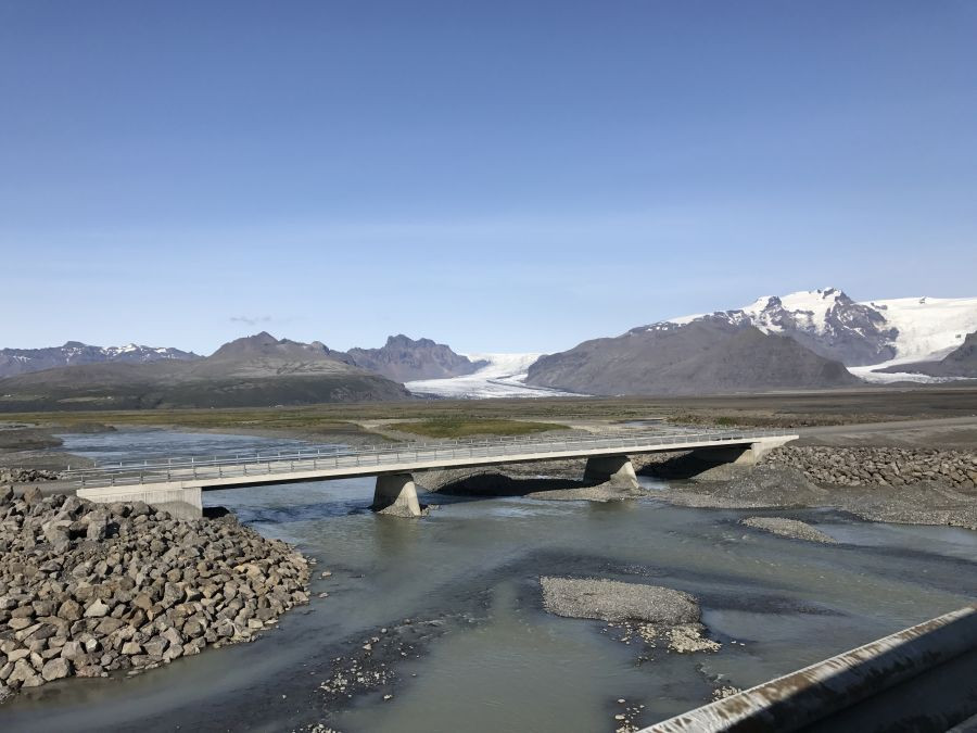 Skeiðarárbrú var lengsta brú landsins 880 metrar að lengd. Ekki hefur verið tekin ákvörðun um framtíð brúarinnar.