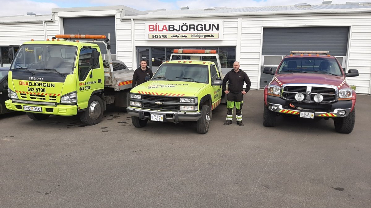 Bílabjörgun hefur yfir að ráða þremur bílum. Izuzu með 5 tonna burðargetu og stóran pall Chevrolet 2,5 tonna burðargetu AWD og meðalalagi stóran pall, ásamt gleraugum að aftan fyrir auka bíl Dodge Ram sem notaður er í að sinna vegaaðstoð, draga úr festu og koma mönnum milli staða.