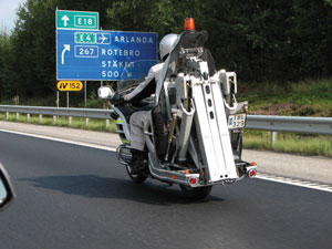Fyrirtæki í Svíþjóð sem heitir Coming Through, hefur byggt talsvert undarlegt farartæki til að flytja bilaða bíla á viðgerðarstað. Farartækið er í grunninn Honda Goldwing mótorhjól. Aftan á hjólið hefur verið smíðað samanfellanlegt mannvirki úr áli sem, þegar greitt er úr því, myndar þriggja hjóla „búkka“ sem rennt er undir framhjól bílsins sem á að draga. Þetta skýrist ágætlega á meðfylgjandi myndum.